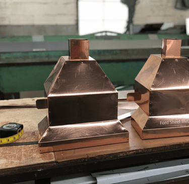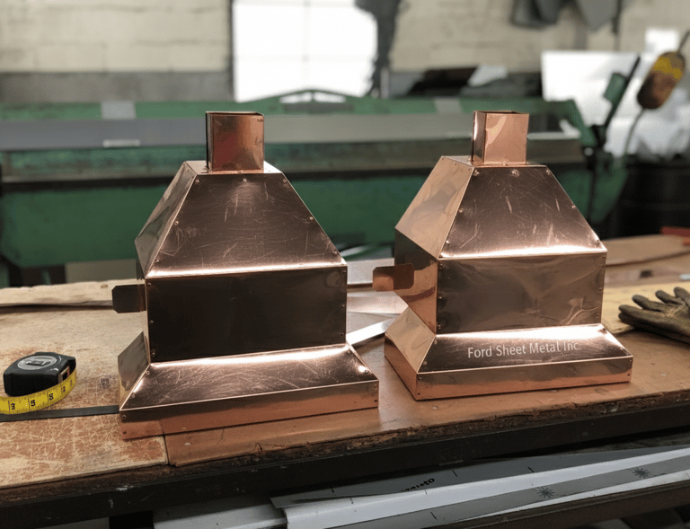 Custom chimney caps, chase covers, and roofing accents.